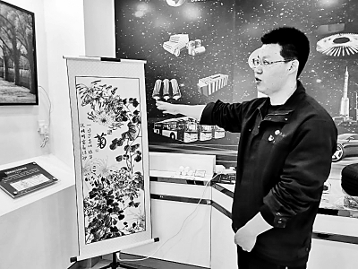 ????七臺河市寶泰隆新材料有限公司工作人員介紹公司研發(fā)的石墨烯卷軸畫。張心覺攝/光明圖片