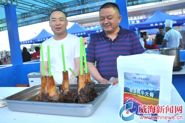 這次美食節,門源縣帶來了當地最具特色的極品牦牛大骨、牦牛奶皮等美食。“食材全部來自門源,味道也是最正宗的。”王新志說,面對威海市民,他們制作的門源美食都是免費贈送,不收費。