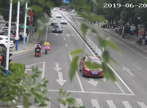 當行車燈變成紅燈以后,韓翔宇一邊用手勢示意身邊車輛避讓,一邊小心翼翼地推著輪椅,將老人送過路口。往來車輛在看到這一幕后,主動減速或避讓,為他們留出一條“愛心通道”。