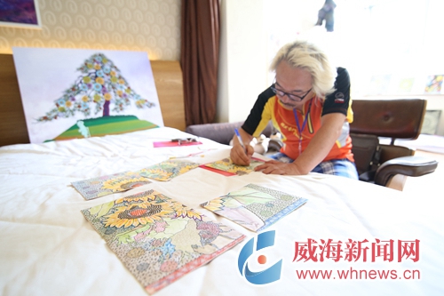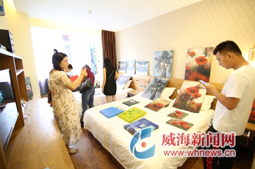 一個個文藝作品各放異彩,一項項傳統藝術重煥生機……這場藝術節,不僅堪稱文創盛宴,更成為各國藝術家互相交流的優質平臺。韓國著名木槿花畫家金終姬房間內,各種形態的木槿花在她筆下更顯生動。“木槿花是韓國的國花,今天我和很多中國畫家交流了畫法,希望讓更多朋友了解韓國文化。”金終姬說,一年前她來伴月灣藝術家駐地參展,威海清新的空氣和美麗的風景給她留下了深刻印象,她因此涉足海洋油畫創作,本次帶來了5幅海洋油畫作品,希望在威進行進一步創作。