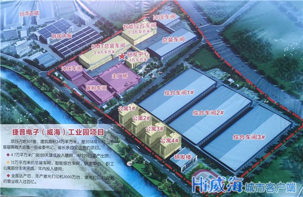 捷普(威海)工業園二期項目由惠普公司最重要的激光打印機核心整機生產企業美國捷普公司投資建設,捷普工業園總投資3.9億美元,占地500畝,建筑面積60萬平方米,主要承載惠普新機型的生產任務。