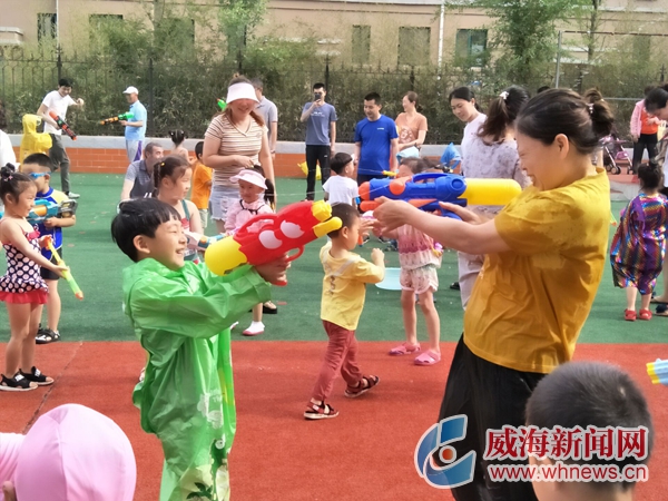 炎炎夏季,戲水是孩子們最喜歡的活動,7月4日,鳳林街道藍山社區聯合轄區智慧熊幼兒園舉行了一場“歡樂打水仗 游戲樂翻天”為主題的親子活動。孩子與家長們奔跑在水池中打水仗,爽快地瘋玩了一把。 威海晚報記者 陳婷 攝