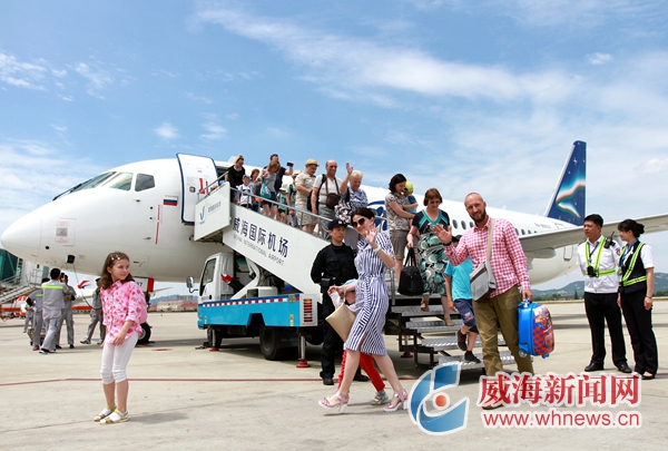 ????“哈拉少!”昨日,俄羅斯游客一下飛機就對美麗的威海贊不絕口。當天,俄羅斯布拉戈維申斯克飛往威海的入境國際旅游包機成功首航,百位俄羅斯游客將在威海開啟為期15天的度假之旅。這是今年我省迎來的首個俄羅斯入境旅游包機。記者 姚威 攝