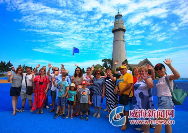 7月10日,來自俄羅斯的旅游團(tuán)正在悅海公園游覽觀光,對威海的美麗風(fēng)光紛紛點(diǎn)贊。