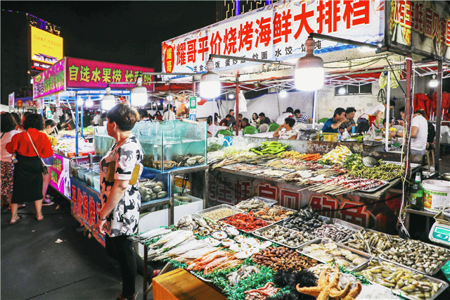 小龍蝦、麻辣小海鮮、長沙臭豆腐、東北烤冷面、重慶酸辣粉、成都串串……夜市的小吃既有威海本地特色,也汲取了來自全國各地的美食精華,在威海人的食物簿上增添的新的一筆。