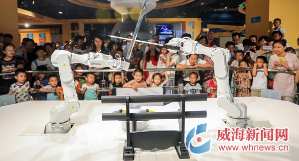 時下正值學生暑假期間,許多家長帶著孩子到威海市科技館度暑假,讓孩子近距離感受科技的力量,從中收獲知識,培養孩子們的科技興趣。(記者 孫大偉 攝)