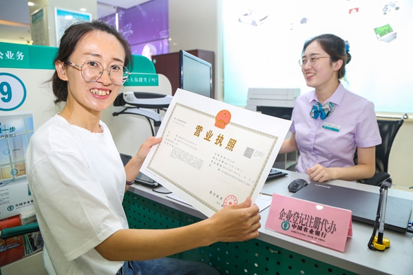7月16日上午,威海藍圖自動化設備有限公司負責人譚女士在農行威海分行營業部代辦專柜成功辦理了營業執照,成為全市首家享受銀行網點注冊登記代辦服務的企業。