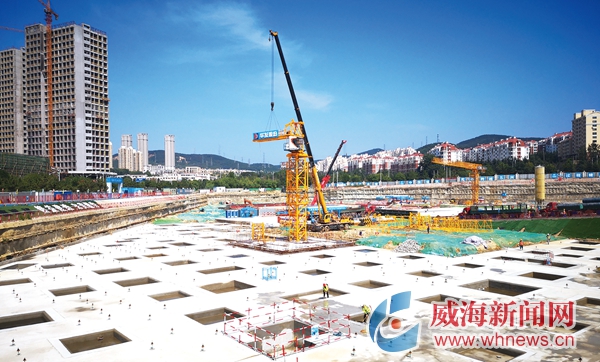 ????7月18日,在威海華發九龍灣中心CBD項目現場,建設施工馬不停蹄。