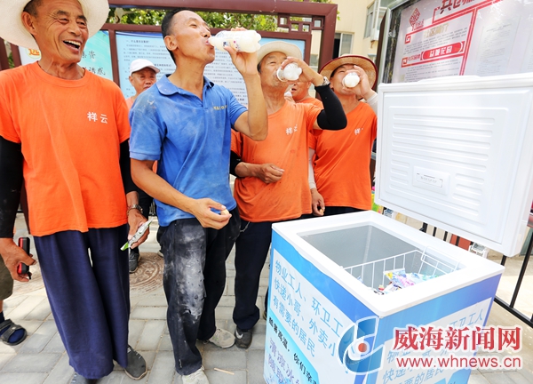 連日來,氣溫偏高,環翠區北門外社區、花園社區等社區單位的愛心共享冰柜正式上崗,為環衛、建筑、物業、外賣、快遞等戶外工作人員免費提供礦泉水 、雪糕等降暑物品,許多愛心市民、商家也紛紛主動補充消暑品,在炎炎夏日分享清涼與關愛。記者 劉志鵬 攝