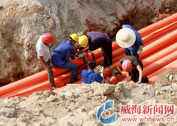 ????地下管道改線是整個(gè)下穿通道改造工程中最大的難點(diǎn)所在。據(jù)大連路東延項(xiàng)目現(xiàn)場(chǎng)負(fù)責(zé)人張峰介紹,下穿通道臨近威海熱電集團(tuán),中心城區(qū)大部分供暖管道和蒸汽管道均經(jīng)過這里,同時(shí),這里也是電力、水務(wù)、燃?xì)狻⑼ㄐ诺裙艿赖闹匾粎R處,不將地下所有管道改線,下穿通道就無法施工。