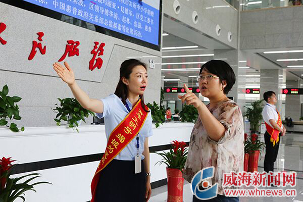 高新區(qū)政務(wù)服務(wù)中心工作人員熱心為百姓服務(wù)。 威海晚報(bào)記者 賈文娟 攝