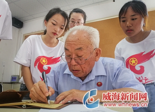 7月29日,環翠區鯨園街道北倉社區社工站迎來了一批年輕的身影。他們是山東青年政治學院中華人民共和國成立70周年“初心”尋訪團的5位大學生志愿者。他們和社區老兵面對面,聆聽老兵們講述紅色故事,并為老兵們留下寶貴的影像資料。