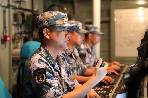 王峰在指揮戰艦作業。 王光杰 攝