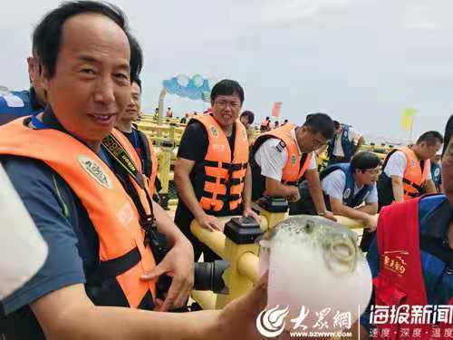 ????隨后,采風團乘船來到海上休閑平臺,在河豚養殖區,養殖人員將在海里小小的河豚打撈上來后,氣性大的小河豚離開水面,用手一碰便鼓起自己胖嘟嘟的身體,瞬間吸引了媒體記者注意,紛紛與河豚合影。“此外,采風團還親手采摘牡蠣、扇貝、貽貝等海產品,體驗海上樂趣。