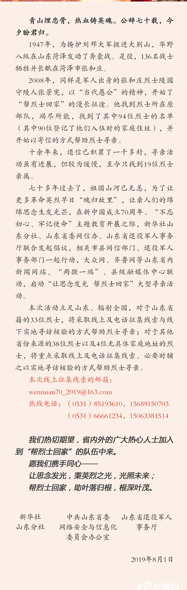 ????如有烈士后人相關線索,歡迎通過以下渠道與我們聯系。