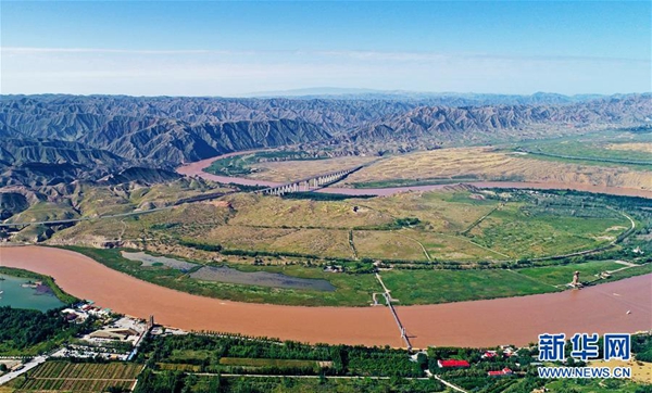 黃河流經寧夏中衛市沙坡頭(2018年9月7日無人機拍攝)。 新華社記者 王鵬 攝