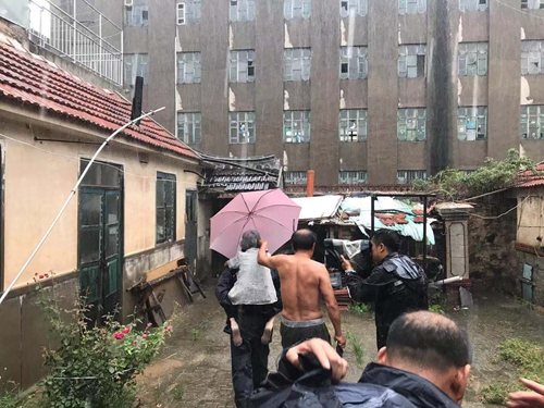 佛頂社區位于環山路南坡上,風大雨急,危險加劇。11日下午2時,田和街道20多名工作人員挨家挨戶勸說居民撤離,10戶30余人順利轉移到九中體育館內。