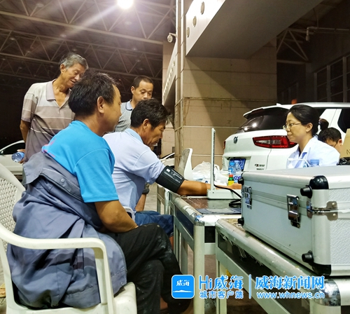 “您的血壓正常。”展覽中心內,醫護人員正在為工人們量血壓,箱子里裝滿了感冒藥、降壓藥等。“沒想到這里這么好,不僅有吃的東西、睡的床褥,身體不舒服了,還能隨時找大夫。”來自華潤施工單位的工人欣喜地說,“我是江蘇人,來威海已經七年了。今天我們在工地工作完,飯都沒吃上,本來打算回板房先睡一覺,沒想到大巴車直接把我們接到了這里。”