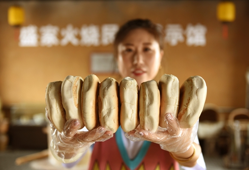 盛家火燒是盛家村的一門傳統手工技藝,迄今已傳承600多年。近年來,盛家村充分發揮傳統項目引領帶動作用,深入挖掘傳統飲食文化的深厚內涵,探索“民宿+傳統”的結合新路,將傳承變熱點、民房變民宿,帶火了農村休閑旅游產業,走上強村富民新路。