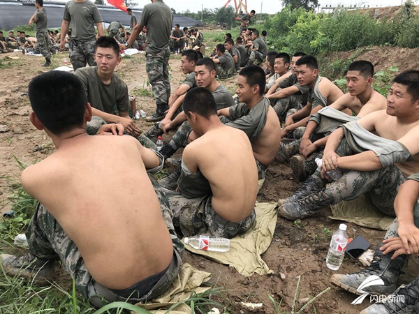 由于連日來的持續(xù)降雨和搶修救援作業(yè),參與救援的戰(zhàn)士們衣服干了又濕,濕了又干。