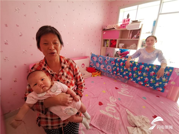 (水退后,40天大的小五安靜地躺在奶奶的懷里,恢復了往日的乖巧)