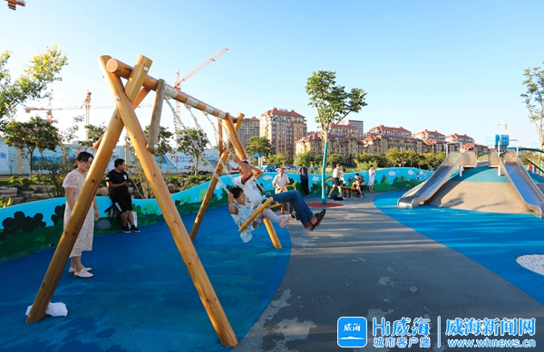環翠區望島河小游園內,娛樂設施齊全,環境優美。 記者 孫大偉 攝