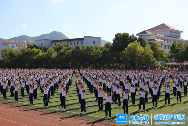 ????當天7時50分,在威海一中西校區操場,伴隨著雄壯的樂聲,來自65級20多個班級的新生組成整齊的方隊,在旗手的引領下,步伐矯健,英姿勃勃,依次走過主席臺,拉開了匯報表演的序幕。分列式結束后,新生們又進行了整齊劃一的跑步及韻律操匯演,展現出這個新集體步調一致、聽從指揮、不怕吃苦、自立自強的精神面貌。