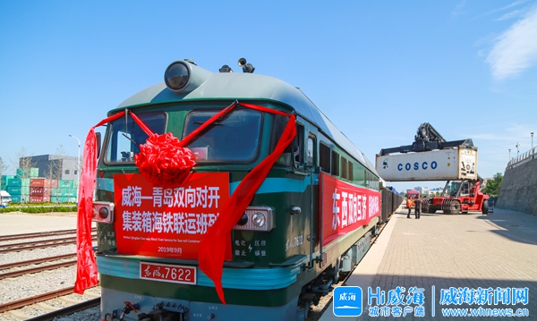????威海—青島雙向對開集裝箱海鐵聯運班列首航