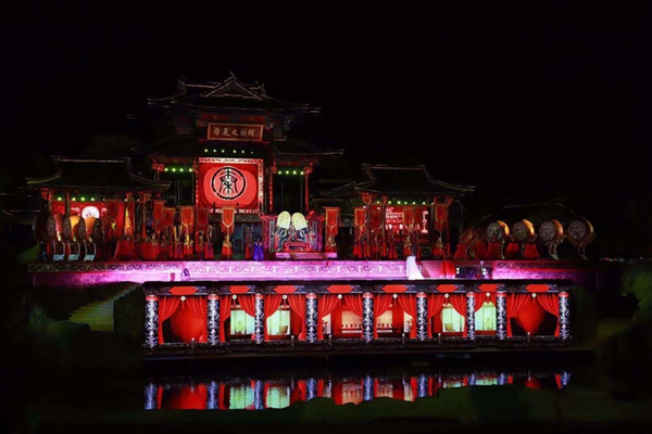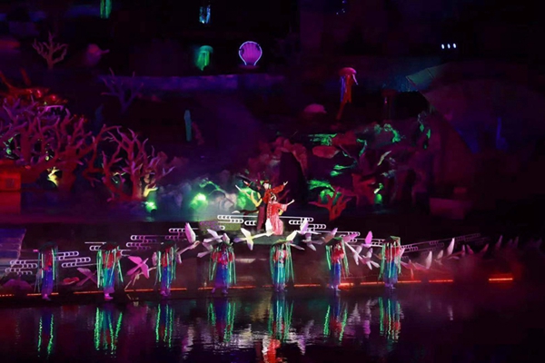 ????為增加景區文化內涵,2010年,華夏文旅集團在礦坑中打造了會跑的實景演藝《神游華夏》秀,利用采石場地貌,因地制宜,變廢為寶,將會跑的移動式看臺觀眾席設在大型采石場上,在山體修復中順勢打造自然山水實景舞臺,借用采石場北側矗立的山體斷面就勢修建 “之”字舞臺,依托陡峭山勢打造“黃河之水天上來”的壯觀景象。《神游華夏》演藝以獨特的演出形式和觀看模式,讓觀眾坐不離席就可以欣賞到水、陸、空全方位立體環繞的跨時空精彩演藝,開啟膠東半島夜間文化生活美妙之旅。