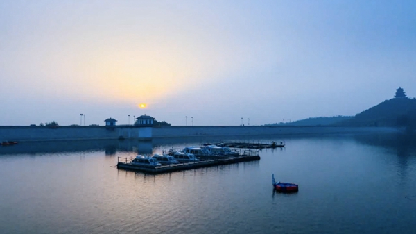 淄博市文昌湖日出。