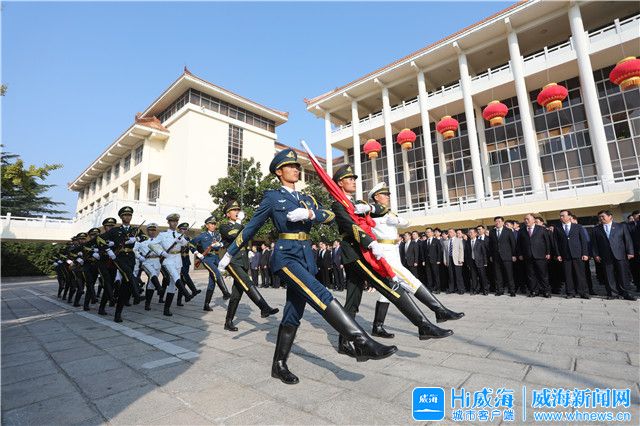 威海新聞網10月1日訊?金秋歡歌喜慶新中國70年華誕,國旗飄揚凝聚威海兒女奮進力量。10月1日,我市隆重舉行升國旗儀式。市領導王魯明、張海波、王學文、高旭光、張宏偉、王亮、侯世超、劉運、劉廣華、鄒積軍、任敬喜等,與全市各界干部群眾代表770余人一同參加莊嚴的升國旗儀式。張宏偉主持儀式。