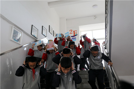 ??????迅速蹲下、雙手護頭、有序撤出教室、跑到操場……隨著警報聲響起,威海七中初二級部學生在老師的引導下有序進行地震疏散演練。“學校每月都組織一次應急疏散演練,目的是把安全意識根植在孩子的心中。希望通過演練,讓孩子們熟悉流程,掌握路線,有序的撤離到安全地帶,減少受傷的幾率。”威海七中德育主任郝洪磊介紹道。