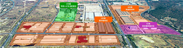 ????規劃圖上,園區北側的一處建筑群顯得“鶴立雞群”,盧軍衛說:“這是已建成的84套專家人才公寓和126套職工公寓,配有婦幼家園、籃球場、羽毛球場、超市等生活設施,可最大限度滿足企業職工生活和娛樂需求。”
