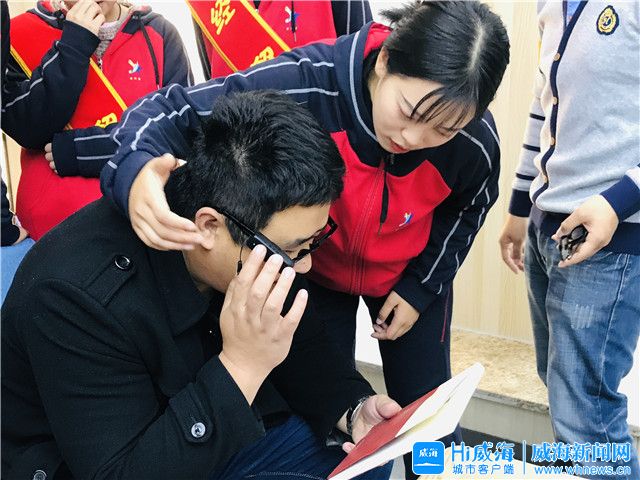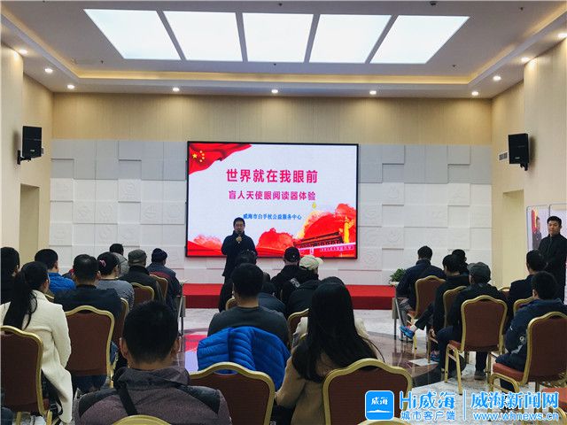 ????11月22日,“世界就在我眼前”盲人天使眼閱讀器體驗活動在環翠區竹島街道金融商圈黨群服務中心舉行,本次活動邀請了30多位有視力障礙的居民前來體驗。