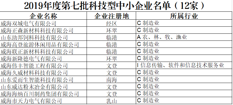 近日,山東省2019年第七批282家入庫科技型中小企業名單公布,其中,我市12家企業入選。