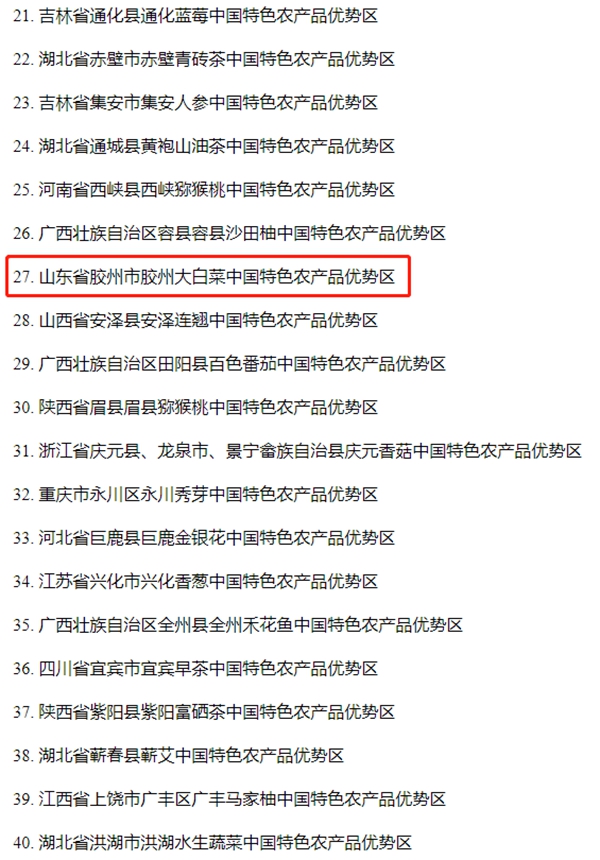 ????此次公布中國特色農產品優勢區共83個,山東有4個,分別是:肥城市肥城桃中國特色農產品優勢區、膠州市膠州大白菜中國特色農產品優勢區、煙臺市煙臺蘋果中國特色農產品優勢區、夏津縣夏津椹果中國特色農產品優勢區。(來源:閃電新聞)