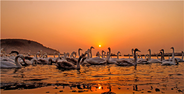 每年十月中旬,上萬只大天鵝從遙遠(yuǎn)的蒙古、西伯利亞,沿著古老的遷徙路線飛躍雪山、草地、森林,歷經(jīng)少則兩三千公里,多則四五千公里的跋涉,耗時長達(dá)一個多月飛抵“天鵝之城”——威海。