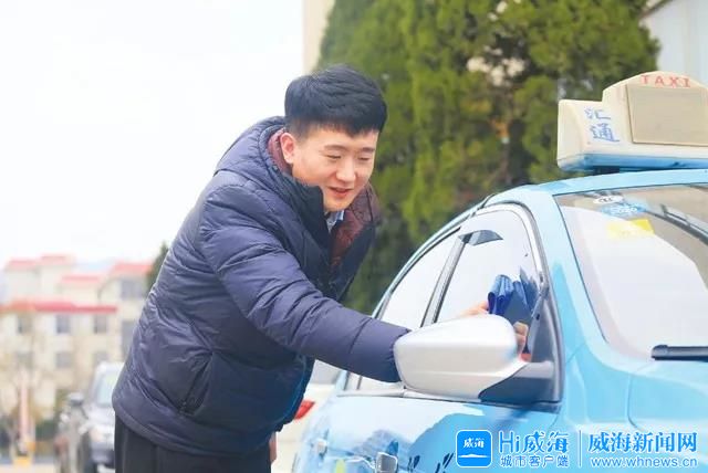 劉少杰在擦拭出租車。Hi威海客戶端記者 高昕 攝