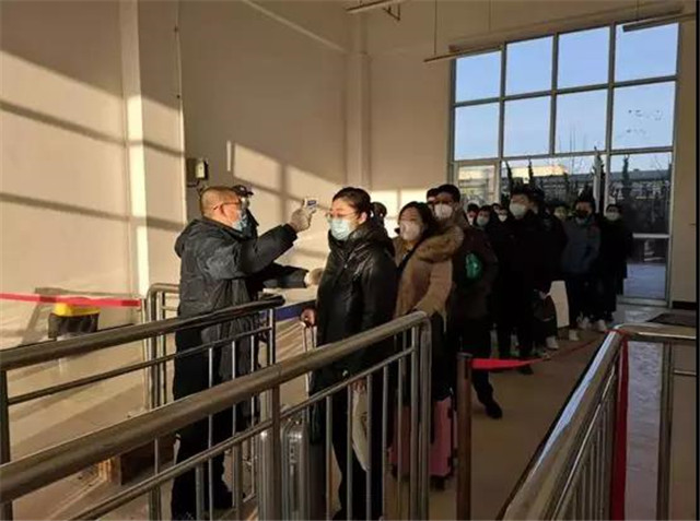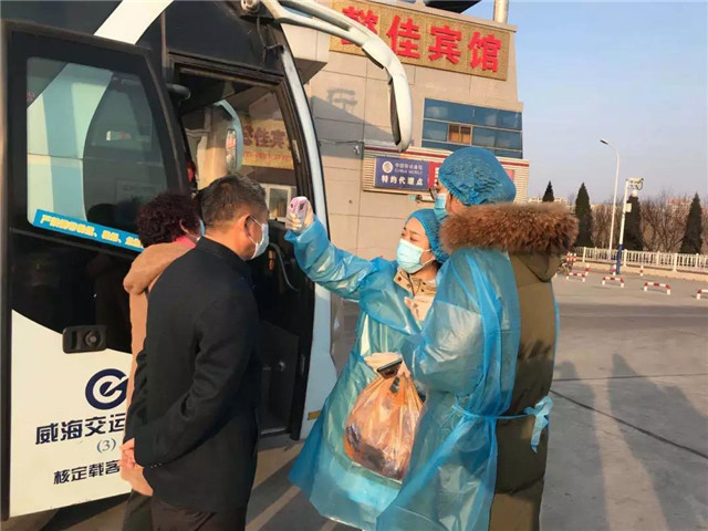 文登區(qū)對(duì)旅客進(jìn)行體溫檢測(cè)