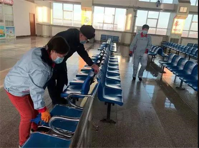 對(duì)候車廳進(jìn)行全面消毒