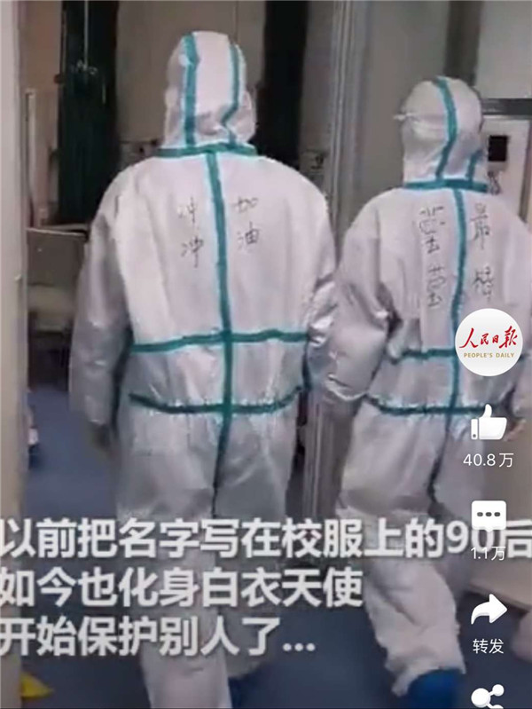 在這個春節,有這樣一段文字,這樣一組圖片,刷爆朋友圈。一組最可愛的背影,是最苦最難而又最無畏的他們。為了保證工作效率,在隔離服上寫名字辨認彼此,參與一場沒有硝煙的戰爭。雖千萬人,吾往矣,請一定平安歸來。