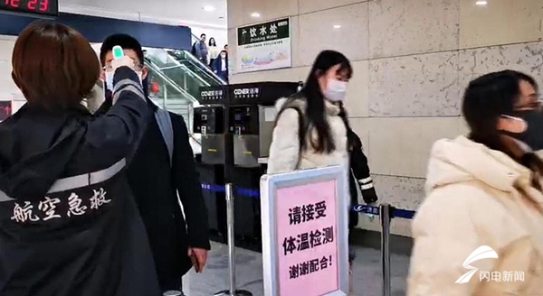 ???圖/濟南遙墻機場為到達旅客做體溫檢測