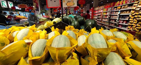 ????家家悅集團采購部門在節日正常備貨的基礎上,積極與廠家、基地進行溝通,根據市場需求,增加消毒用品、民生商品的訂貨儲備和調度,確保貨源充足供應?!拔覀兿群髲膲酃狻⒏=ǖ热珖r基地采購蔬菜發往全省各門店,每天供應蔬菜、肉、蛋等民生商品1000余噸,米、面、糧、油、水等生活用品550余噸,消毒清潔用品供應近5萬瓶,統一定價,確保市民菜籃子、面袋子充足且價格穩定?!奔壹覑偧瘓F股份有限公司副總經理李美說。超市所有商品都由物流中心統一配送,總部統一定價;物流中心根據門店要貨訂單安排配送場次,車輛調度中心對600多輛配送車輛進行全程定位監控,統一指揮調度,安全及時配送到門店。同時,各超市還保持通風和定時消毒,對賣場、辦公場所及購物車、收銀機、電子秤、自動扶梯、服務臺等設備器具每天進行消毒;超市為每位在崗員工配發口罩,并要求員工上崗必須佩戴口罩、勤洗手、使用消毒液等,做好個人防護。