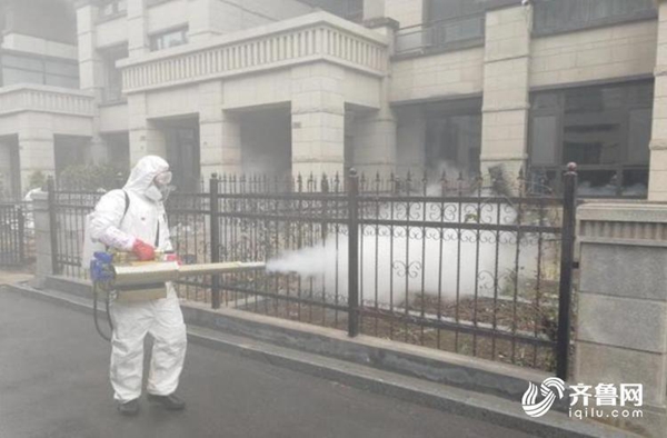 最近幾天,"上馬青島特戰救援隊"隊員每天每人背著 100 余斤的消毒設備和消毒液在街道、居民樓間爭分奪秒奮戰。