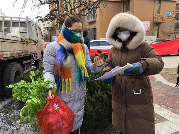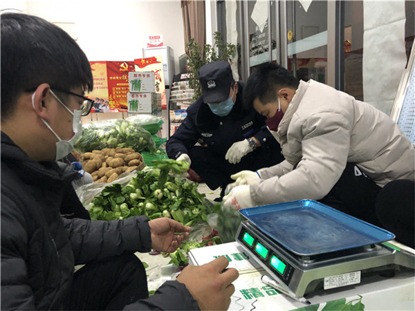 尖椒3.8元/斤、土豆2元/斤、圓蔥2.8元/斤、芹菜2.8元/斤,頭菜2.3元/斤……“現在有疫情,能不出門就不出門??杉依锊荒軘嗖耍姨澤鐓^想得周到,送來了又實惠又新鮮的愛心菜?!本用駞怖滦臐M意足地拎著一大包組合好的蔬菜,由衷地給社區點贊。