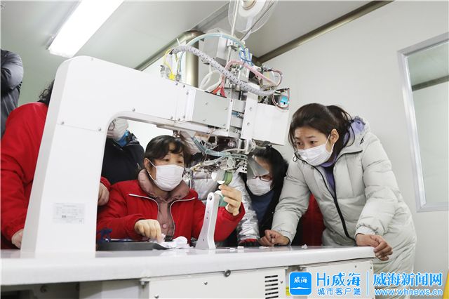 生產線上,工人唐紅潔正在反復練習壓膠機的操作流程。唐洪杰是迪尚集團技術研發中心的一位打樣工人,有10余年的縫紉經驗。10日上午,唐紅潔接到公司的緊急通知就立刻趕來車間。她說:“上班第一天就能為國家出分力,我感到很光榮!”