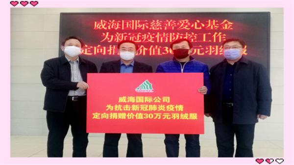 2月5日,威海國際慈善愛心基金定向捐贈價值30萬元的羽絨服,溫暖了一線建筑工人和物業人員的心。