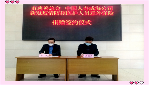 2月5日,中國人壽威海分公司向威海市疫情防控一線醫護人員捐贈“守護天使醫護人員特定保險”,保額1年,最高保額30萬/人,合計總保額超過30億元。