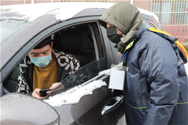 大雪紛飛,擋不住“疫”線工作者戰(zhàn)勝疫情的決心和步伐。