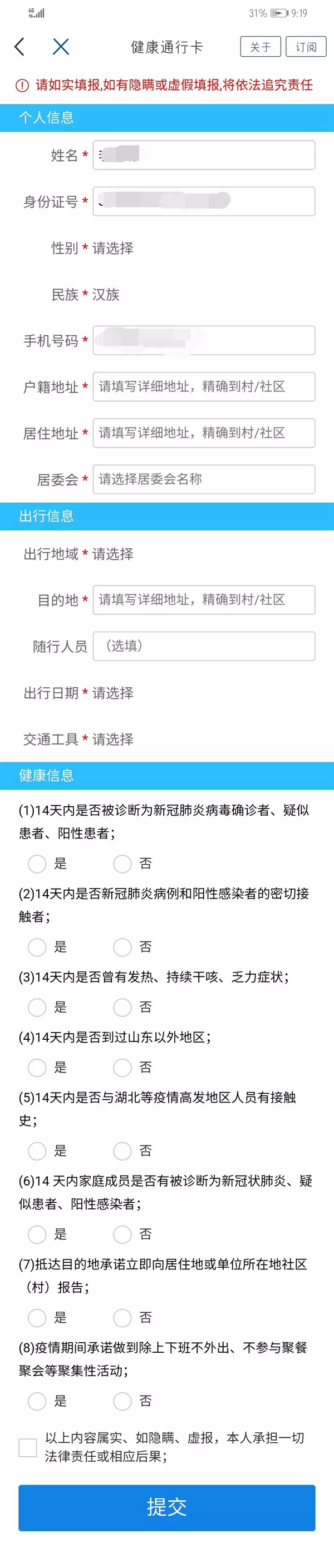 ??????注意:請務必如實填寫,如有隱瞞或虛假填報,將依法追究責任。